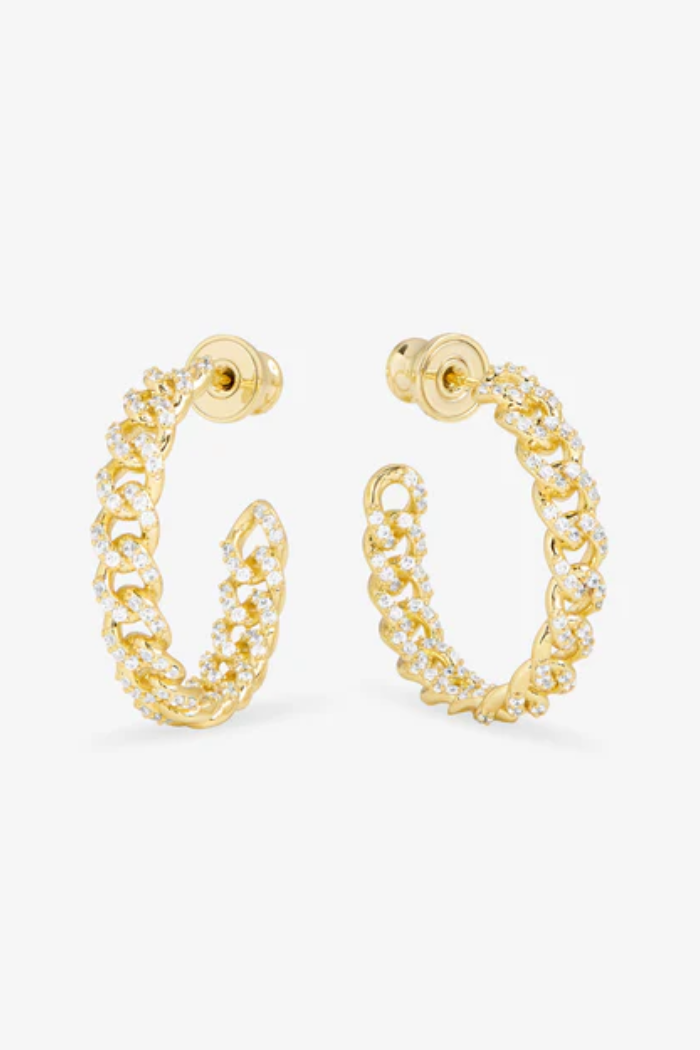 Your new everyday icon. The Pavé Julian Chain Hoops in 1" deliver the perfect balance of bold chain links and sparkling pavé detailing. Effortless to wear, impossible to ignore.