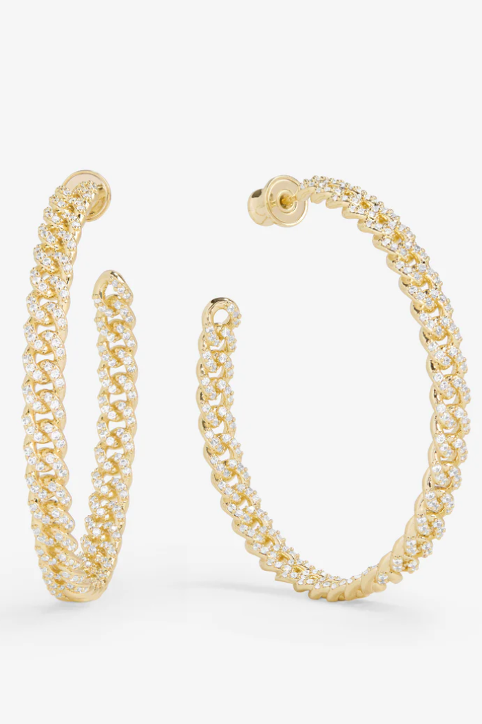 Pavé Julian Chain Hoops 2" | Gold