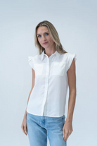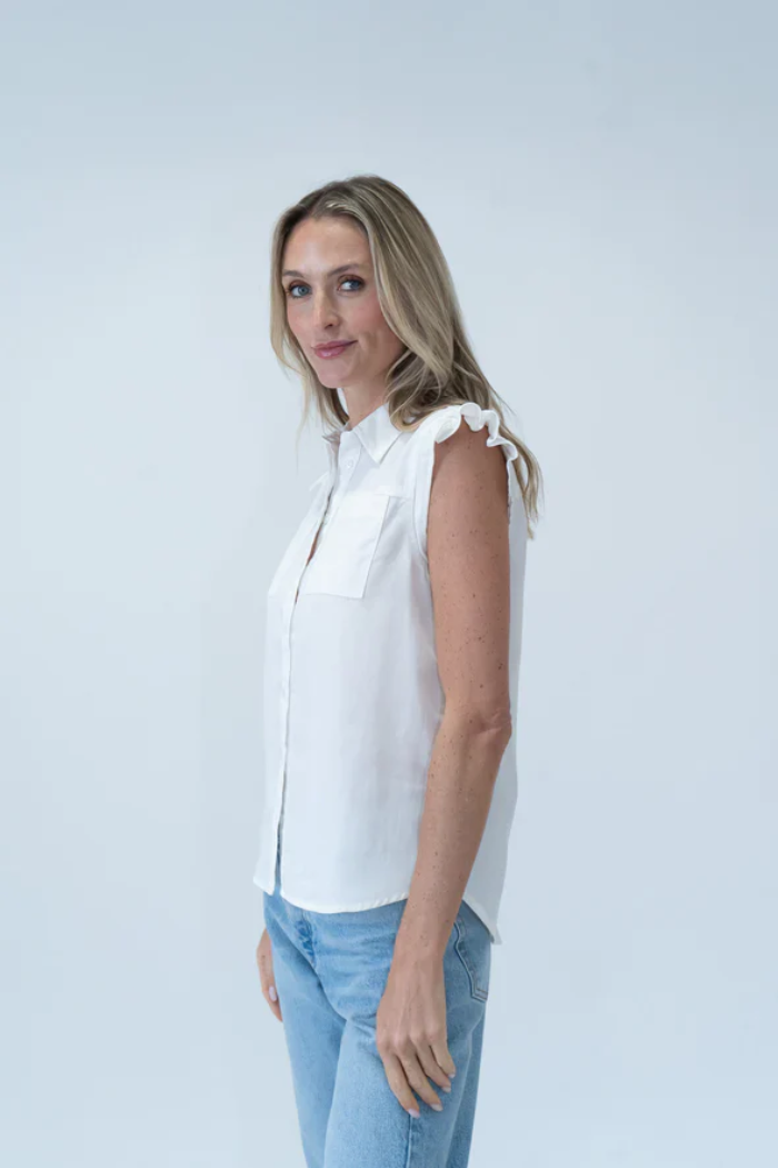 Introducing the Penelope top! She's light weight, easy, and perfect for those hot summer days. The flutter cap sleeves give a fun feminine flare to this not-so-traditional button down. Perfect for the grabbing a quick cocktail or spending hours in the park reading, you'll be the best dresses as usual.
