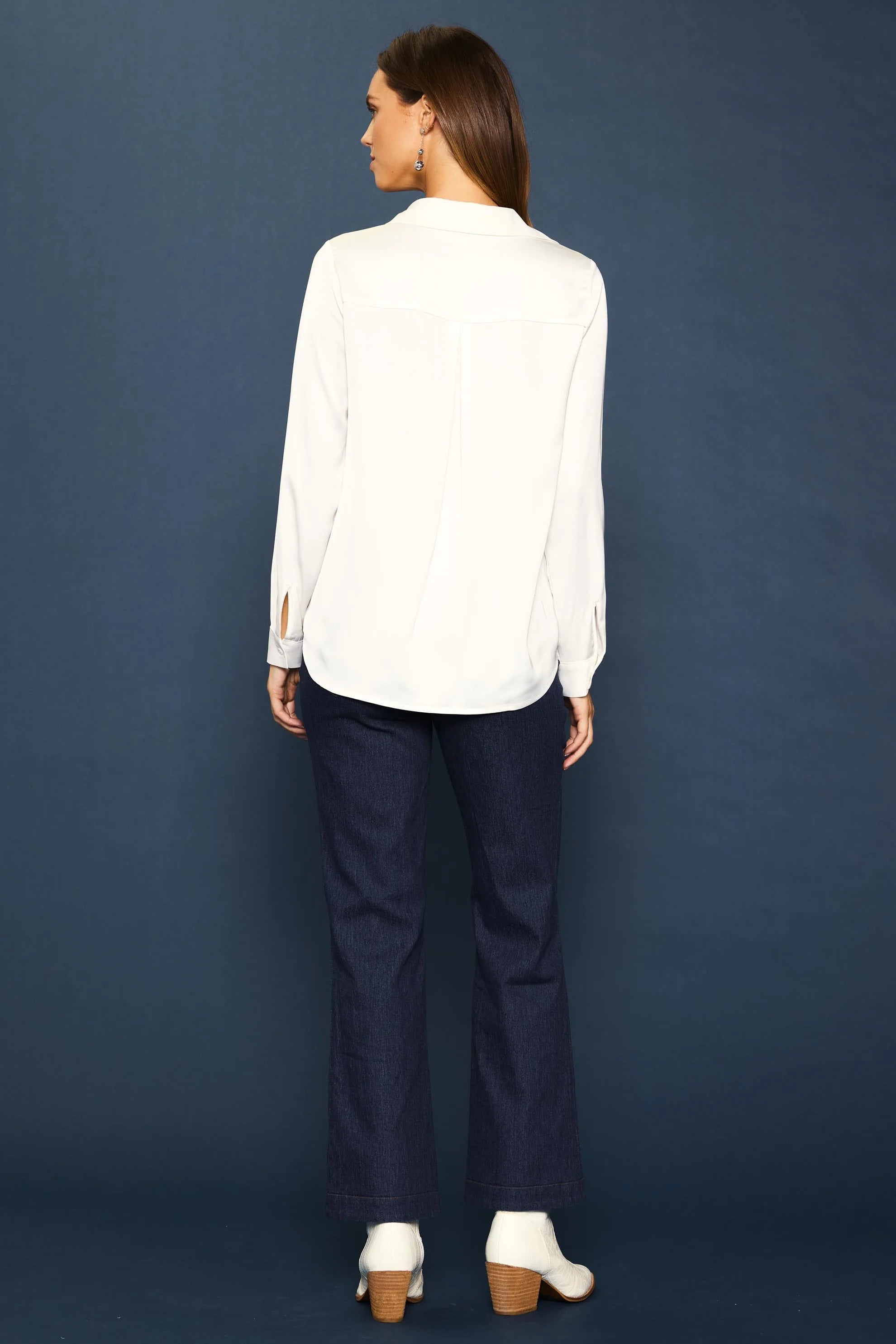 This versatile button-up shirt is a wardrobe essential you'll turn to year-round. Crafted from eco-friendly recycled materials, it combines effortless style with sustainability. Featuring a relaxed fit and an open neckline, it’s easy to dress up or down—whether tucked into jeans, paired with tailored trousers, or styled with a skirt, it’s a perfect match for any occasion.