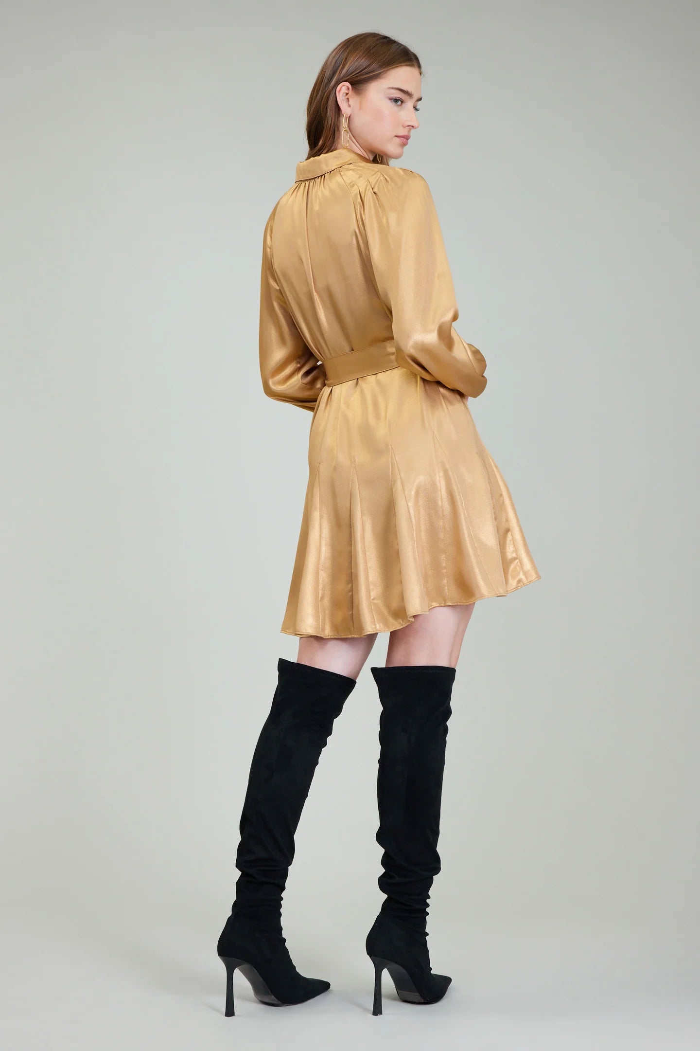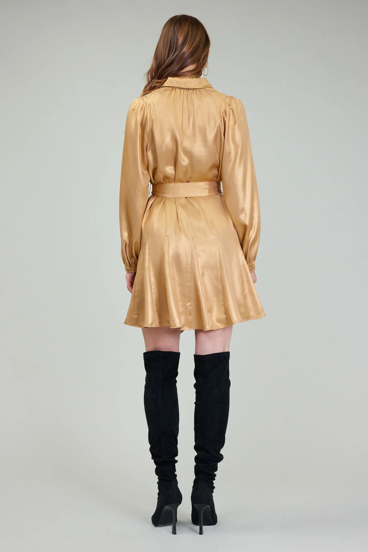 Step into effortless elegance with this long-sleeve mini dress, designed to captivate with its subtle, luxurious sheen. Perfect for any occasion, it combines timeless design with modern, fashion-forward details to create a truly standout piece.