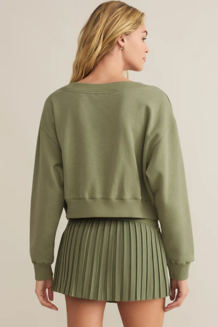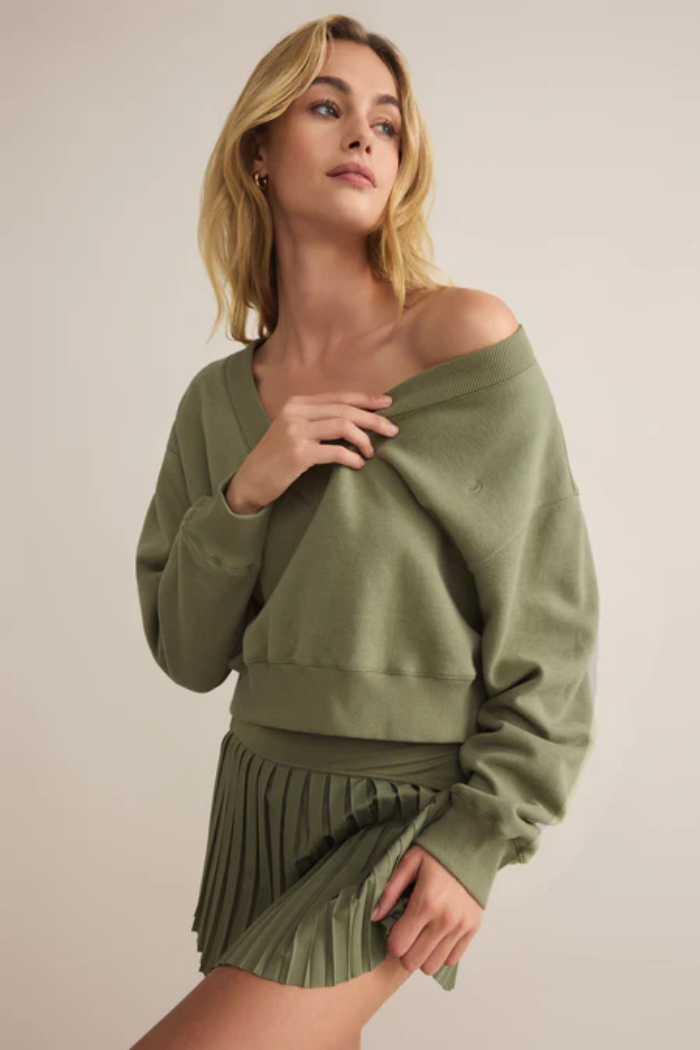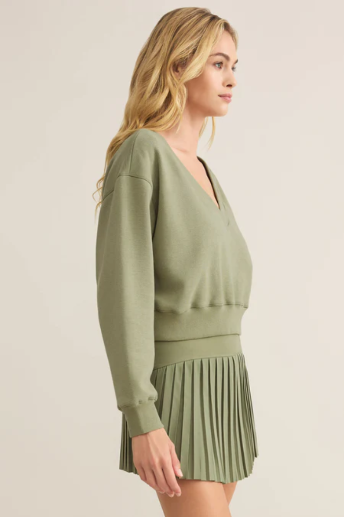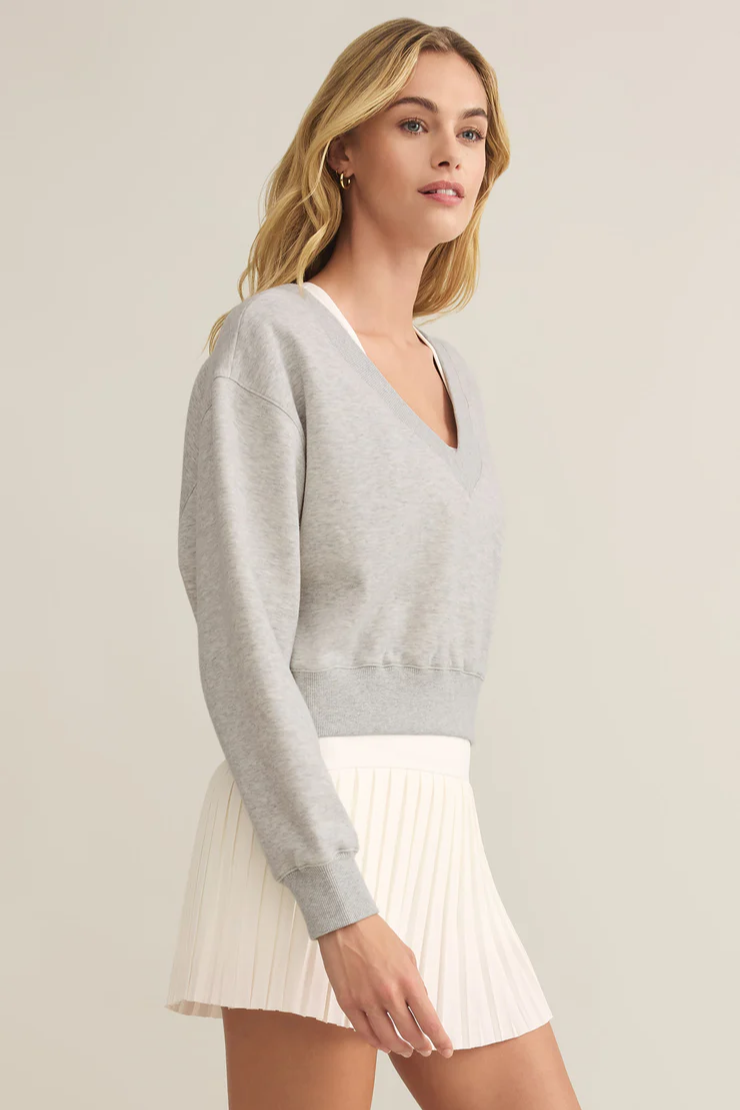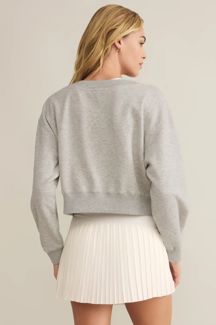 This cropped v-neck sweatshirt is made from midweight fleece for a cozy, oversized fit. Finished with our signature moon logo on the chest, it’s perfect for layering up in style.