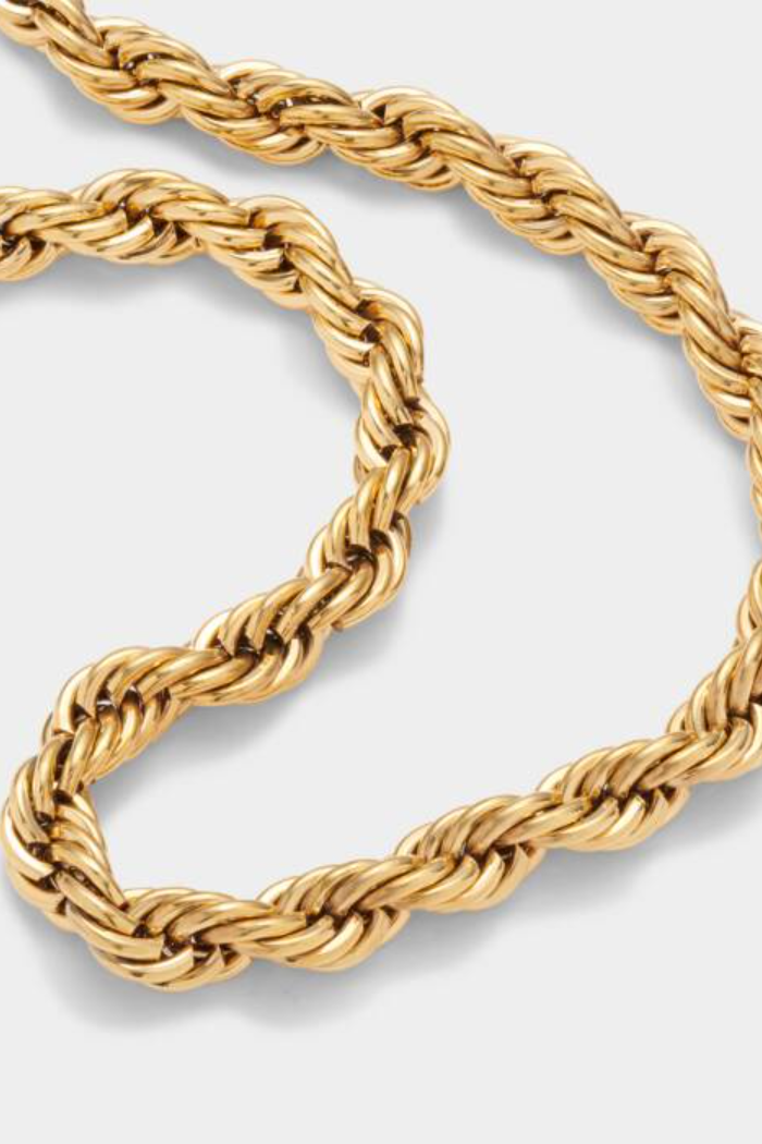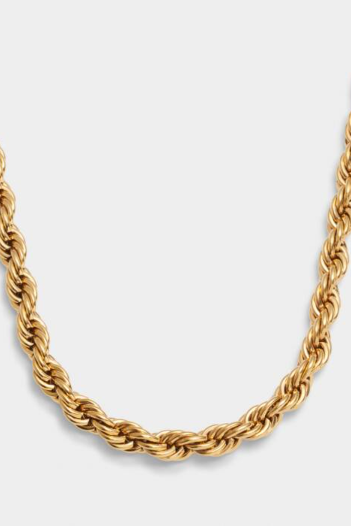 An essential for every jewellery box, our Reine Waterproof Gold Rope Necklace is as timeless as it is stylish. Created in 18K Gold PVD Coating, this style is waterproof, sweat proof and life proof, meaning you can wear it all year round! Depending on your outfit and style, you can wear this necklace individually or layer with other necklaces.
