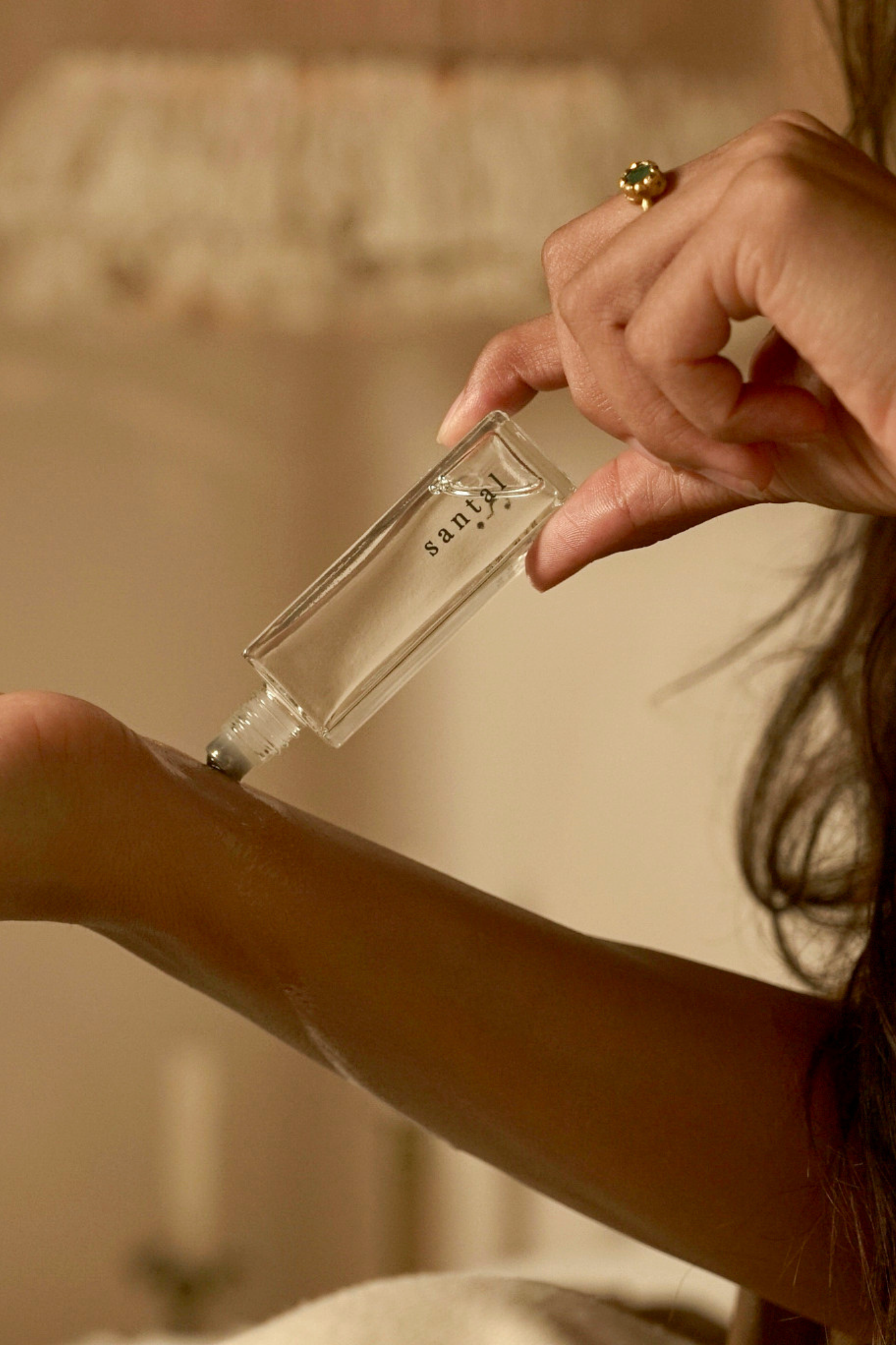 Gently glide the rollerball onto your pulse points, then lightly massage into the skin to activate the scent.