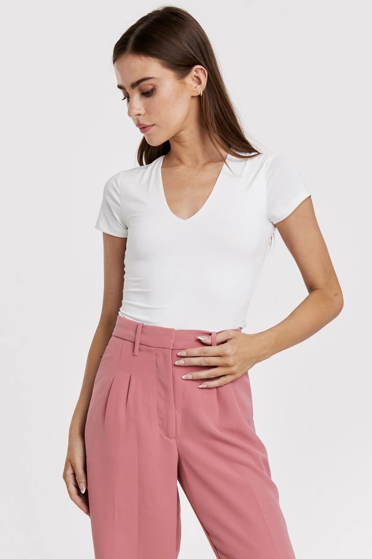Effortless elegance in our Roma vneck short sleeve double layer top. Designed for the modern woman who values both style and versatility, this top boasts a flattering neckline and a lightweight double-layer construction that drapes beautifully.