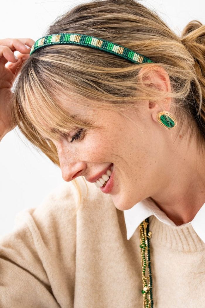 Hand-beaded in striking stripes, this slim band adds just the right amount of color without ever feeling fussy. Designed with a comfortable, no-squeeze fit, it’s the effortless accessory that works with every hairstyle, from messy buns to polished ponytails.