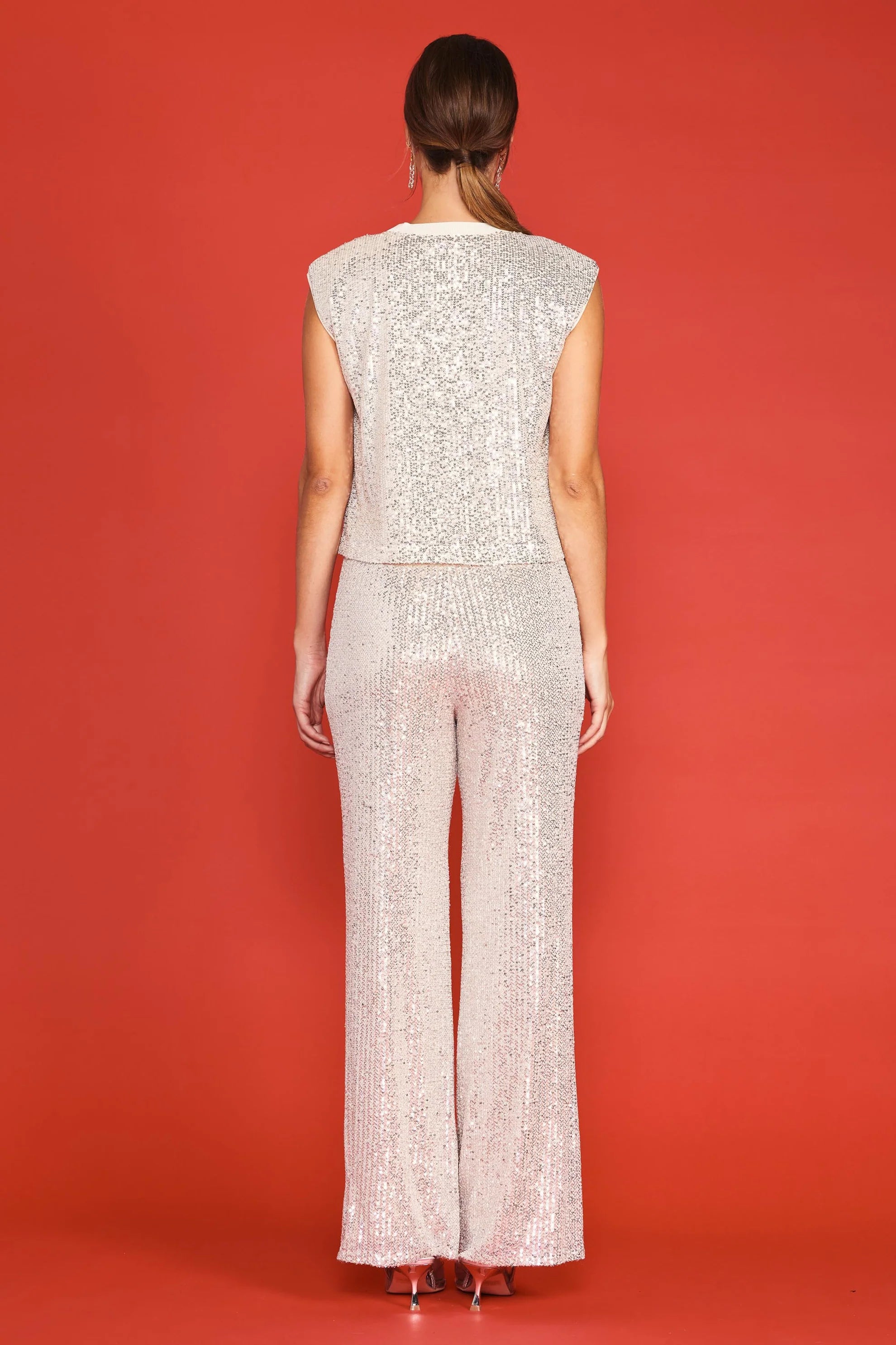 Elevate your look with this glamorous muscle top, adorned with a cascade of thousands of radiant sequins that shimmer with every move. This striking top combines classic structure with bold sparkle, making it perfect for both edgy daytime looks and dazzling evening attire.