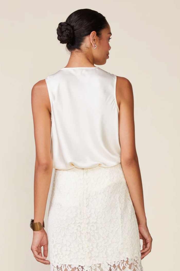 A classic cowl neck shell perfect to wear alone or layered. A beautiful satin piece to wear on repeat. Pair this top with our Lace Midi Skirt or Satin Godet Pants for a top to bottom ensemble.