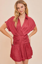 Experience effortless style with our Shirring Wrap Dress. Designed for versatility, this dress features a flattering wrap silhouette and beautiful shirred detailing. Perfect for any occasion, its comfortable fabric ensures all-day wear. Pair it with heels or sandals for a chic look every time.