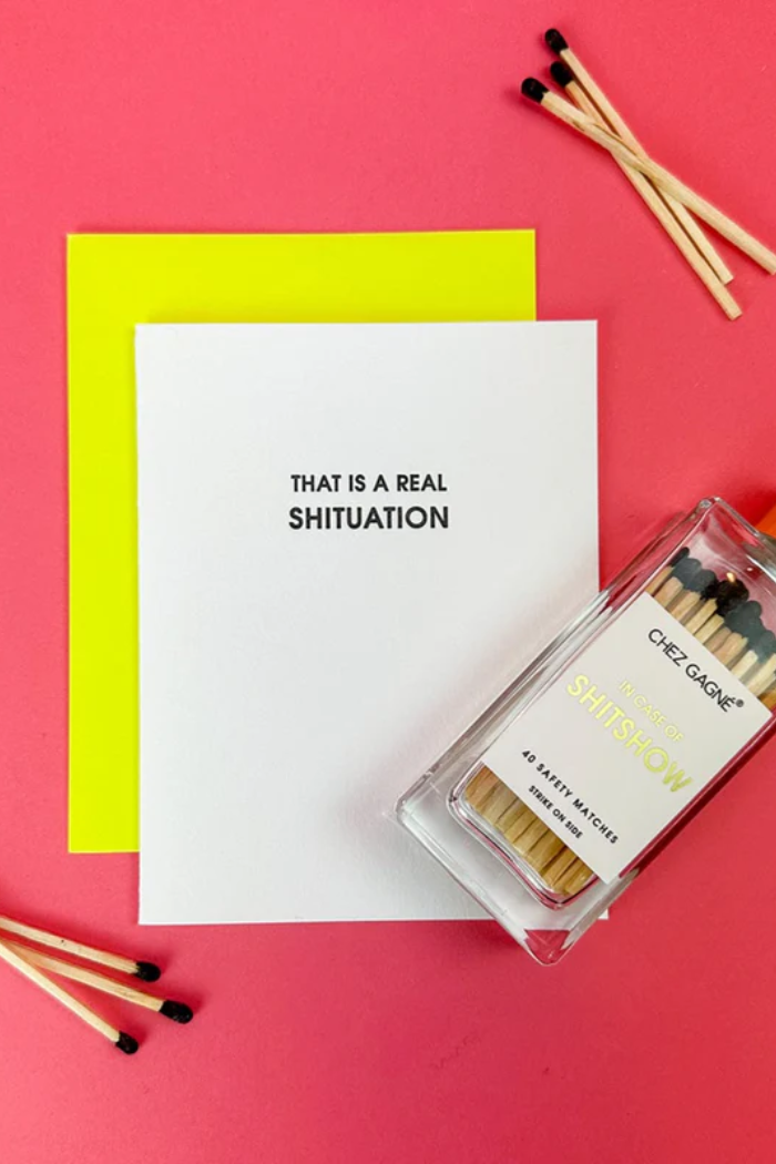 Our "That is a Real Shituation" card is letterpress printed on a vintage printing press in sunny California.