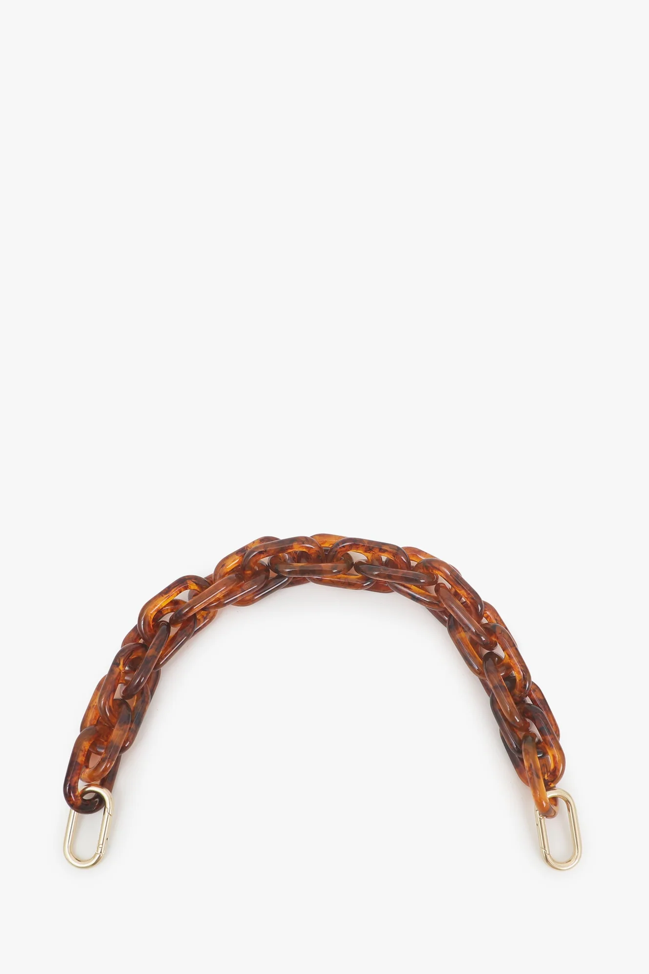 Resin link shortie strap. Converts any bag to a top-handle. Attaches to any bag w/ D-rings via brass spring links. 17 inches long