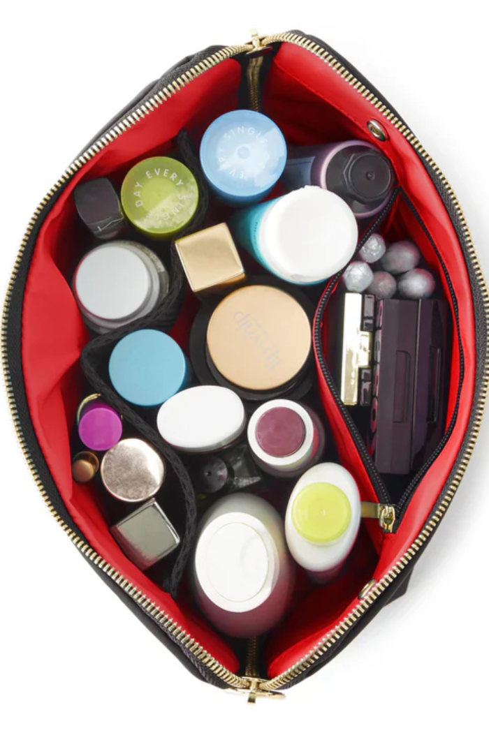 Upgrade to the makeup bag that not only stores and protects your makeup, but has pockets made for your beauty blender, eyelash curler, and more. The Signature Makeup Bag has roomy compartments and opens on three sides to allow for easy access to see all of your products. No more digging! Add a Snap-in an Organizer for more organization and separation. Fabric bags are fully machine washable. Leather bags have a zip-out interior liner that is machine washable.