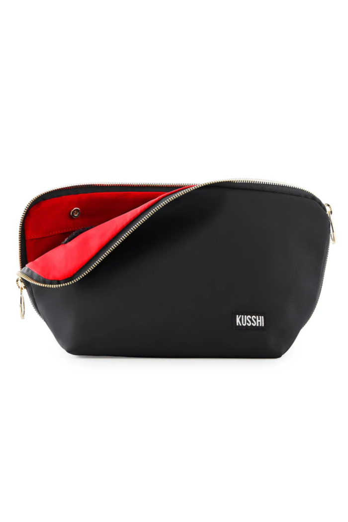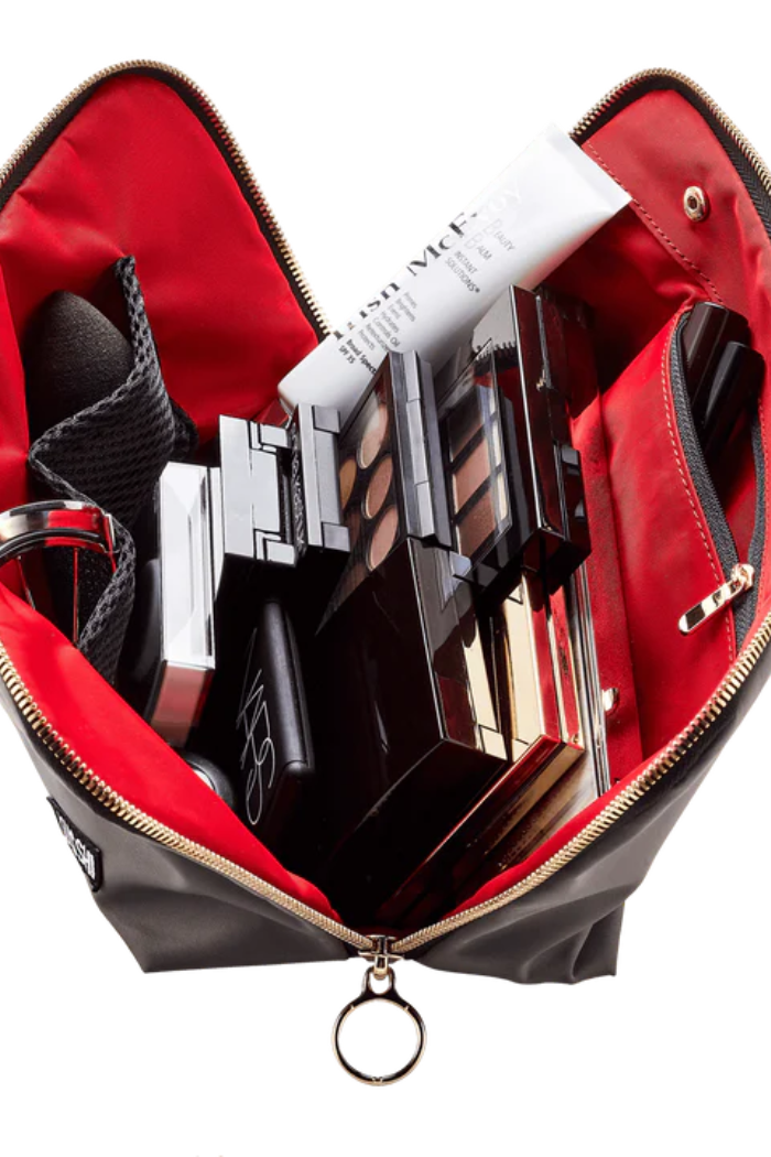 KUSSHI Signature Makeup Bag (medium) Black with Red Interior