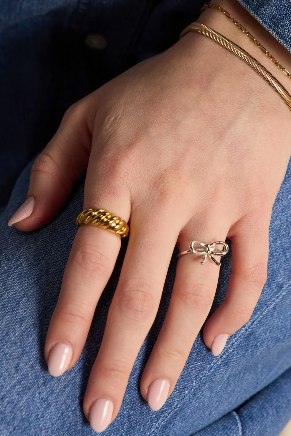 Contemporary and elegant, this sweet bow piece is the perfect stackable ring. Waterproof PVD plating makes this ring an everyday essential that won't tarnish!
