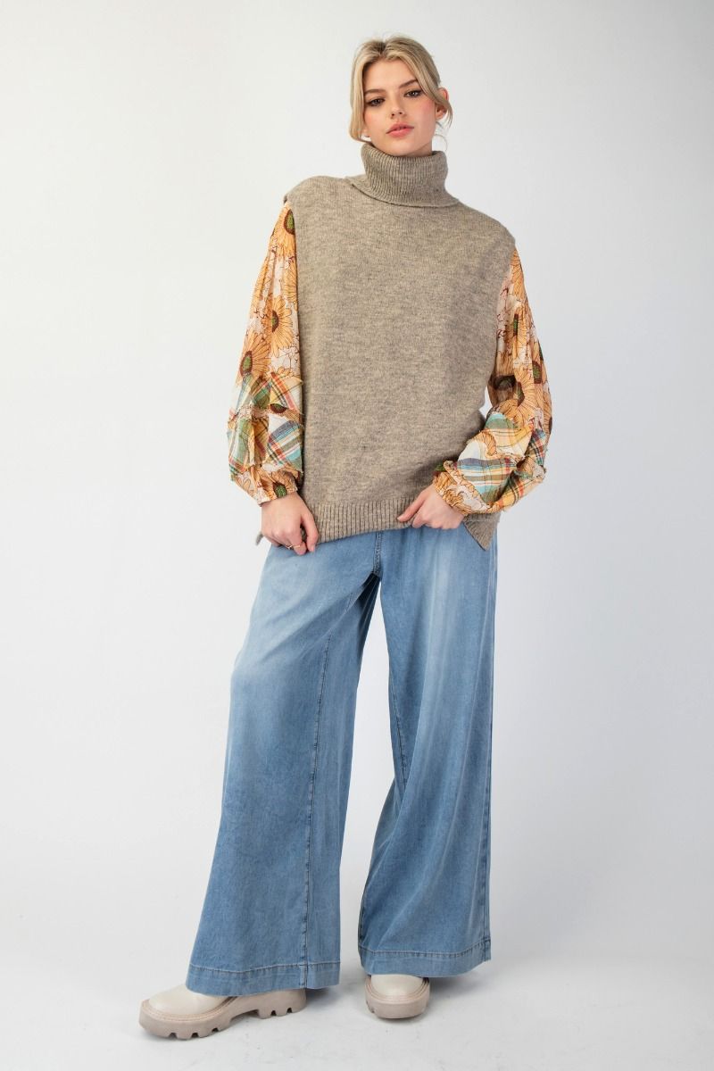 Embrace effortless style and comfort with our Sleeveless Knit Turtleneck Sweater. Featuring a sleeveless design and a classic turtleneck neckline, this sweater offers timeless appeal with a modern twist. The ribbed neck and hem add texture and structure, while the side slits lend a touch of movement and flair.