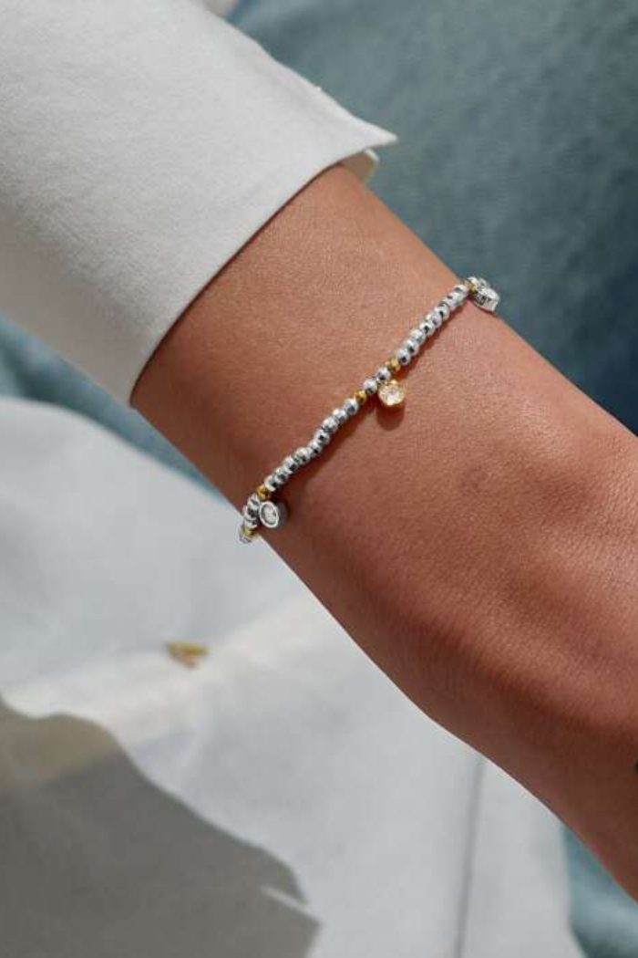 Dial up the dazzle with our Sparkle Confetti A Littles - featuring a range of gorgeous sentiments for the holiday season and beyond. With mixed metal faceted beads and a twinkling trio charm design, the Sparkle Confetti A Little 'Season To Sparkle' Bracelet In Silver And Gold-Tone Plating is nestled among shimmering silver and gold star-shaped confetti, ready to create a gifting moment they'll treasure for years to come.