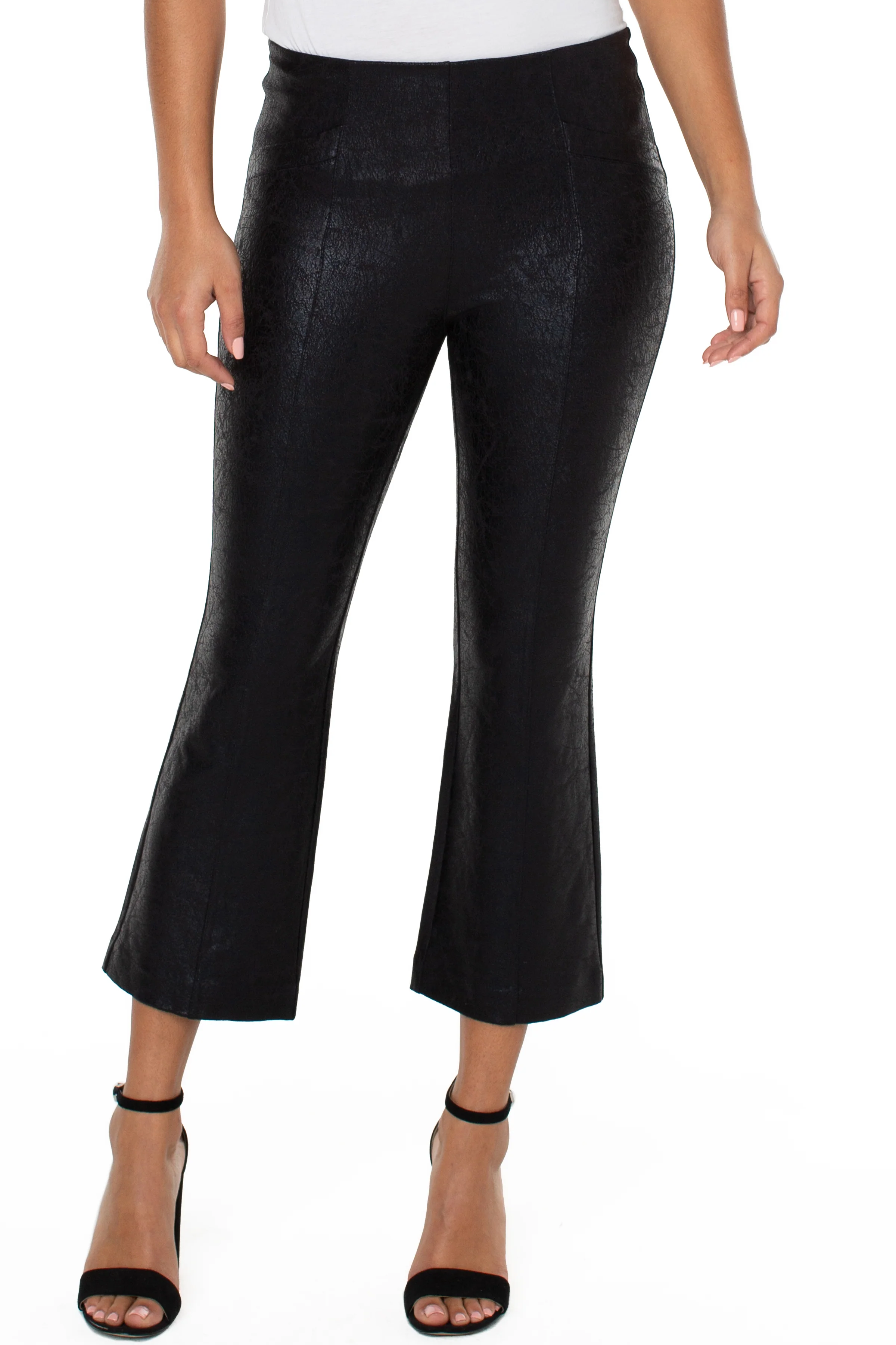 Feel sleek and sophisticated in our Stella Kick Flare. A day to night solution for those days on-the-go! Inner paneling detailing contours the body for a slim silhouette. Featured in our subtle, yet oh-so-chic crackle coated fabric.
