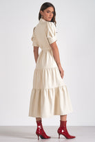 Turn heads this season in the Tabitha Midi Dress, a standout piece designed to make any holiday moment feel luxurious. Crafted from smooth faux leather, it features a softly tiered silhouette that flatters with effortless elegance. The midi length adds a refined touch, while subtle movement in the skirt ensures a graceful flow with every step. Perfect for festive gatherings, special dinners, or any night you want to shine. This dress delivers confident, contemporary style with a sophisticated edge.