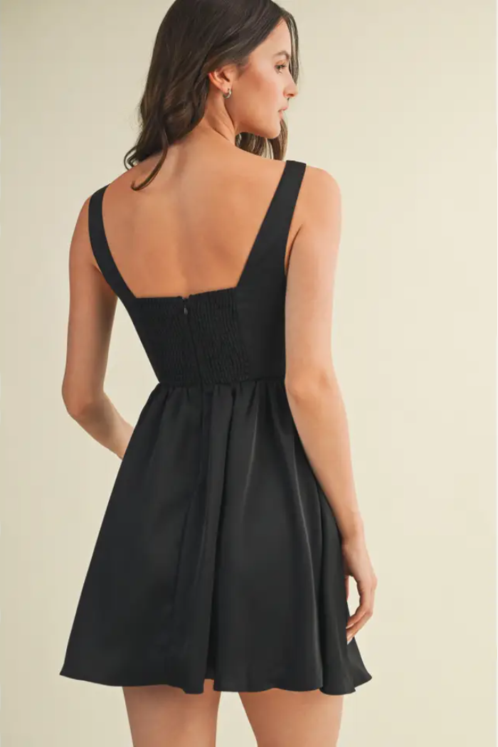 The Tatiana Corset Flare Dress is a timeless blend of elegance and playful charm. Designed with a structured corset-inspired bodice, it flatters your silhouette while offering a comfortable fit. The square neckline and wide straps add a modern, refined touch, while the flared skirt creates a soft, feminine shape that moves with ease. Perfect for a night out, special occasions, or any moment you want to feel effortlessly chic.