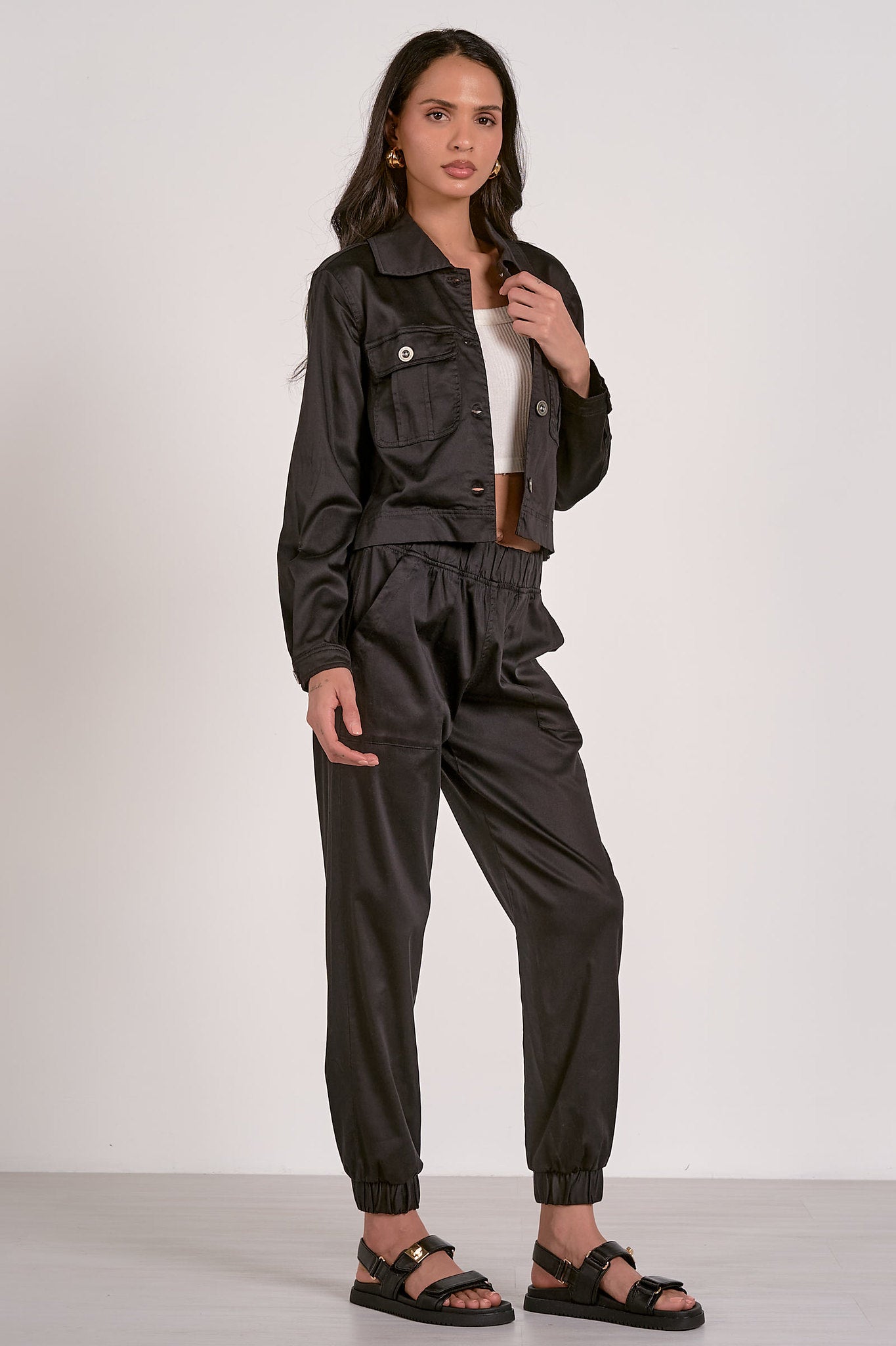 Meet the Teagan Crop Button Down Jacket, your new go-to layer for effortless style. Crafted from breathable, lightweight Tencel, this cropped silhouette drapes beautifully and feels soft against the skin. Wear it buttoned as a chic standalone top or layer it open over your favorites when the weather shifts. Easy, versatile, and endlessly wearable—this is the piece you’ll reach for season after season.