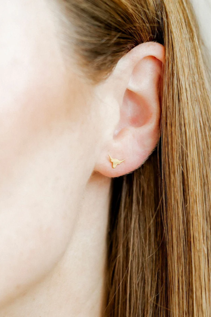 Channel bold Western charm with the Screwback Stud Earrings – Longhorn. Featuring a sleek steer-head silhouette, these earrings are the perfect accessory for everyday wear or a night out. The screwback studs ensure a secure, comfortable fit so you can wear them confidently all day long. Lightweight and hypoallergenic, they’re perfect for sensitive ears.