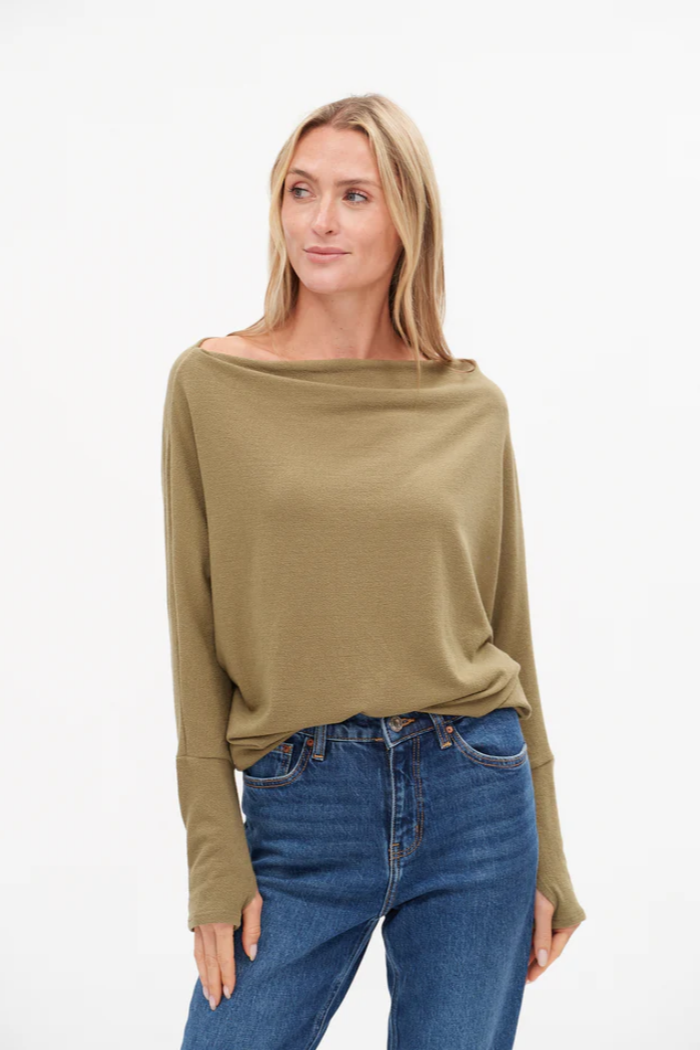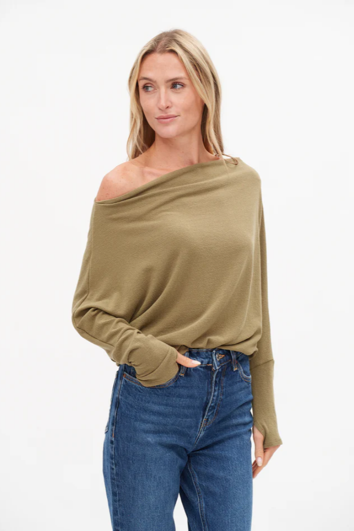 Effortlessly versatile, the Anywhere Top is your go-to for every part of your day. Lightweight, flattering, and easy to style, with thumb holes and a neckline you can wear three ways—cowl, off one shoulder, or off both—there’s a reason this is our best seller: it’s simply the top you’ll wear again and again.