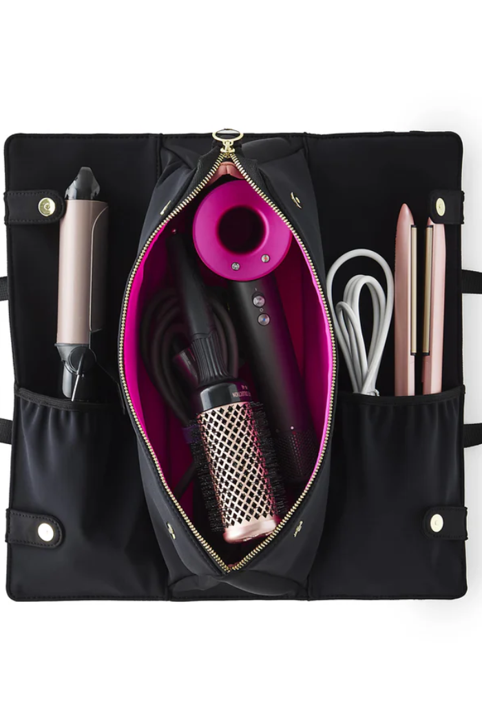 Turn Up the Heat! The Hair Tools Bag is the perfect travel accessory to keep your hot tools protected and organized. Heat-resistant up to 380 degrees F, this is the perfect place to lay your hot tool while it is still warm or once it's cooled. Pockets on each interior flap for brushes, extra hair tools or even hairspray. Use the 3 pocket zipper pouch for small hair accessories like bobby pins, hair ties or clips. With handles to hang anywhere, this is the perfect accessory to use daily or on your next trip. Machine washable and made of 100% premium neoprene.