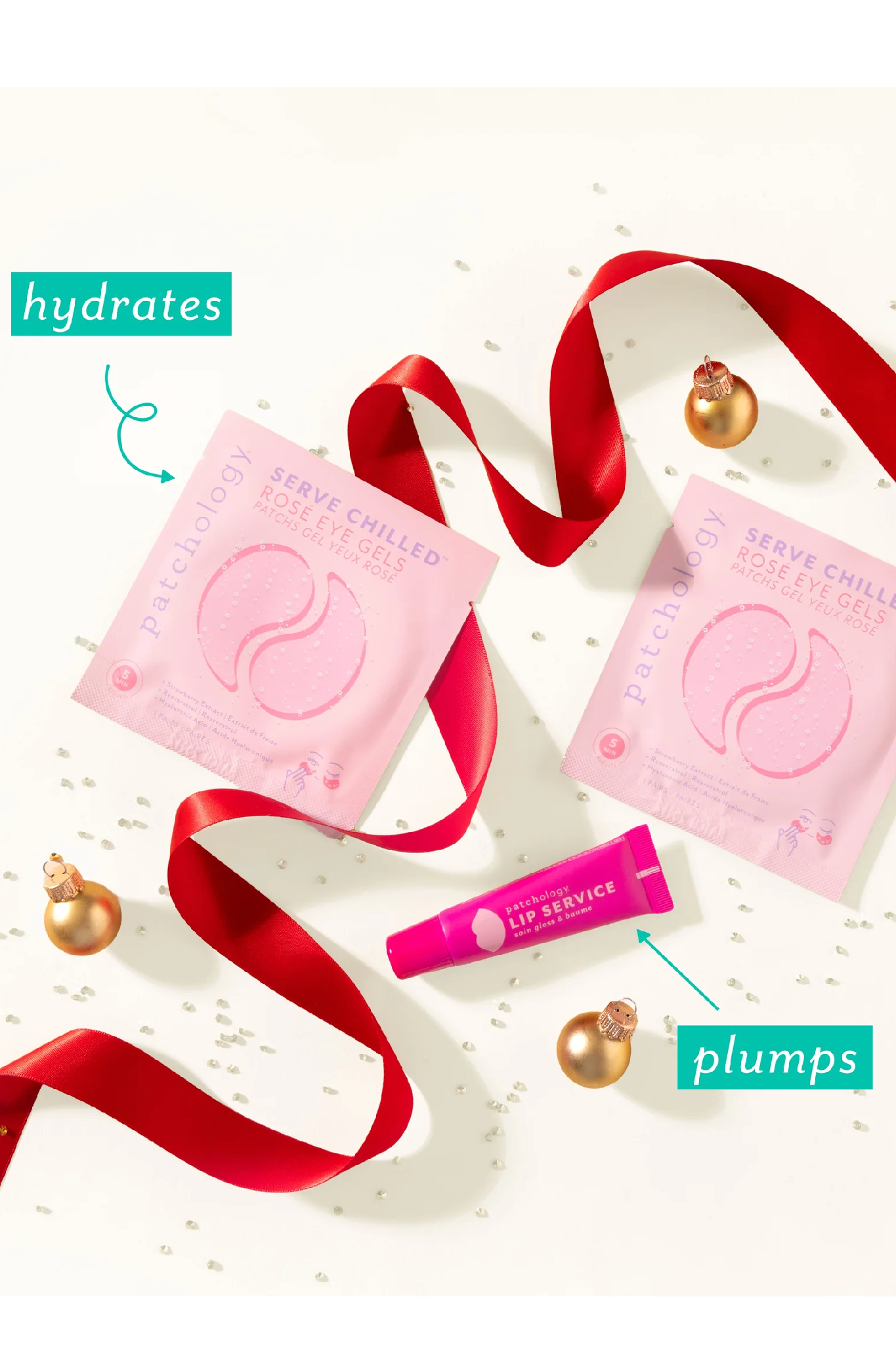 Get holiday-party ready with this limited-edition eye & lip glow kit. Featuring two Rosé Eye Gels and our best-selling, top-rated Lip Service Gloss-to-Balm, it’s everything you need for refreshed under-eyes and kissable lips—all in one festive set. Smooth, hydrate, and shine your way through every mistletoe moment.
