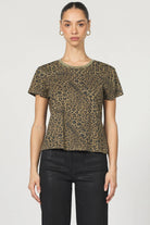 Embracing timeless elegance with the UNITY top in vetiver leopard print, featuring a crew neck and short sleeves in a classic fit, crafted from 100% cotton for unparalleled comfort and breathability.