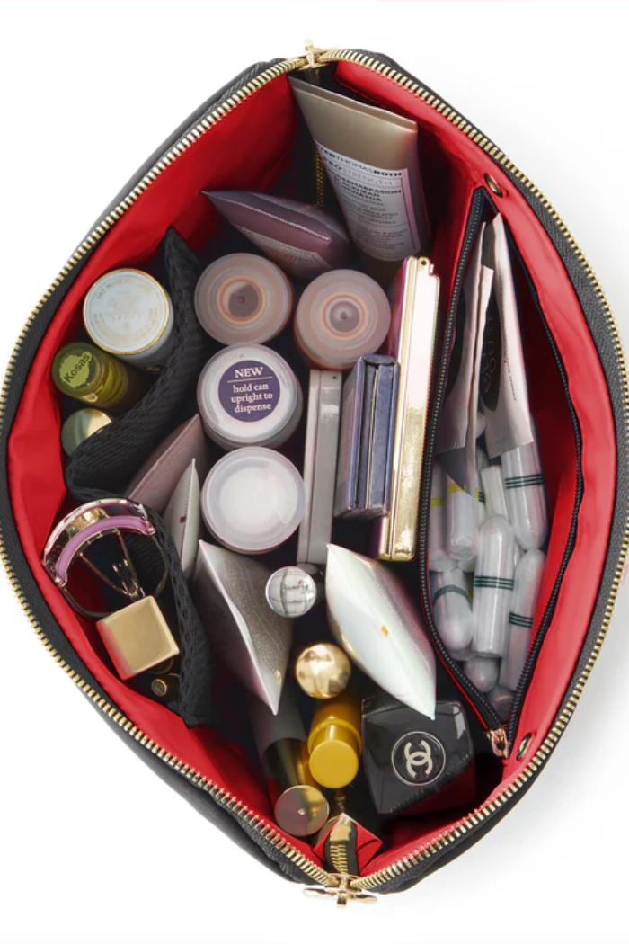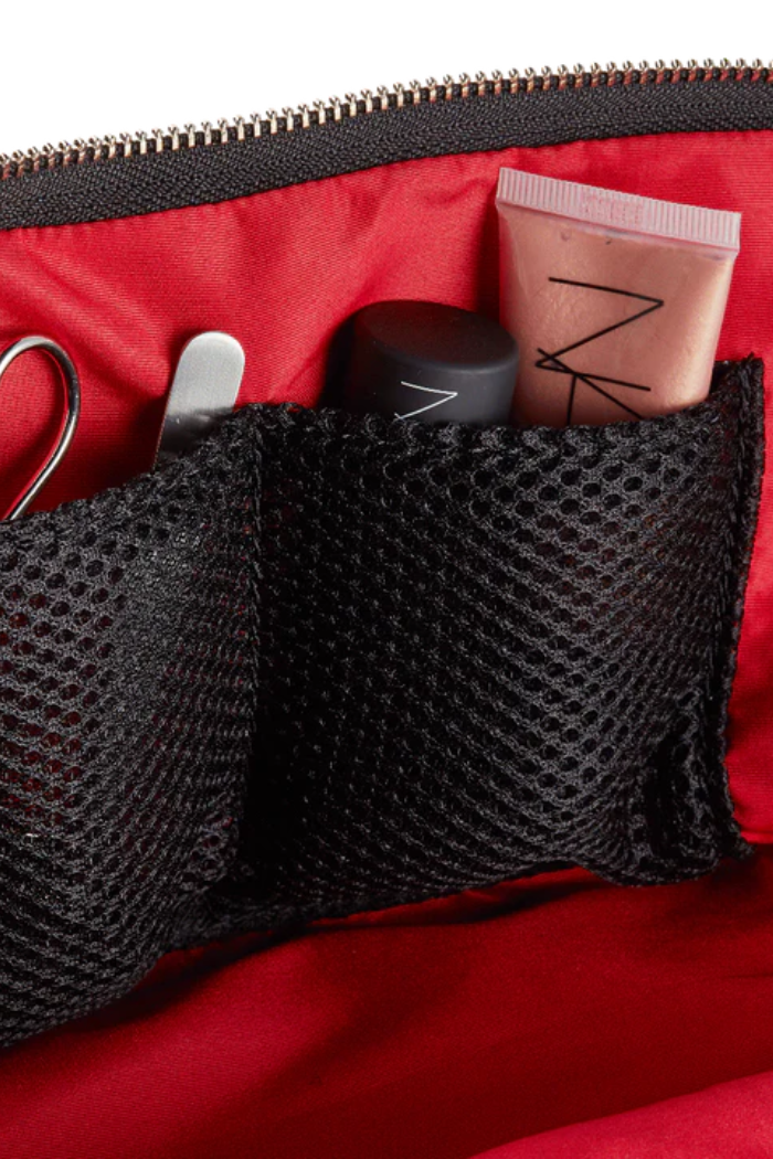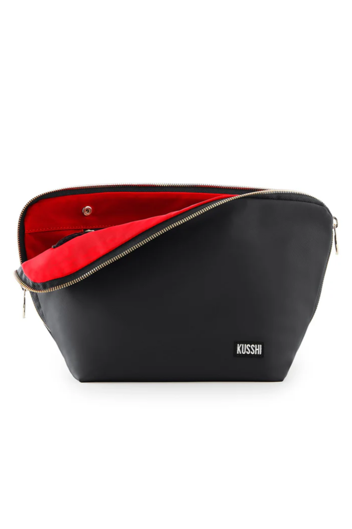 KUSSHI Vacationer Makeup Bag (large) Black Fabric with Red Interior