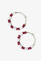 VICTORIA MIXED SEED BEAD HOOP EARRINGS WHITE + DARK RED