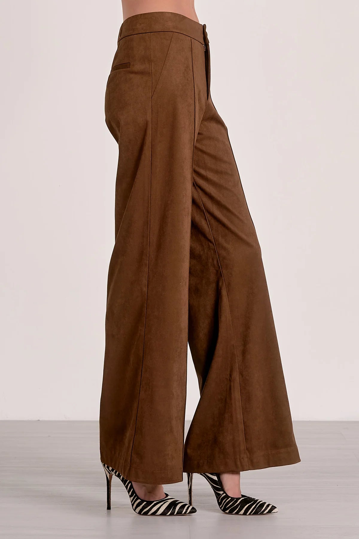 The Viola Pants in Chocolate bring playful sophistication to your wardrobe with a statement-making faux suede finish and a flattering flared silhouette. Designed in a rich chocolate hue, these pants offer a soft, luxe feel that elevates any look while delivering all-day comfort. Pair them with the matching vest for a perfectly coordinated set, or style them solo for effortless versatility. With their dramatic flare and polished appeal, the Viola Pants are made to move with you—turning every step into a confident, head-turning moment.