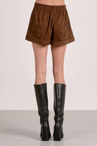 Embrace effortless comfort with the Violet Shorts in rich chocolate suede. Crafted with a soft, velvety feel, these shorts feature an easy elastic waistband that moves with you for an all-day perfect fit. Thoughtfully designed with functional pockets, they strike the ideal balance between relaxed ease and elevated style. Whether paired with the matching vest or styled on their own, these shorts bring a cozy, polished touch to any laid-back look.