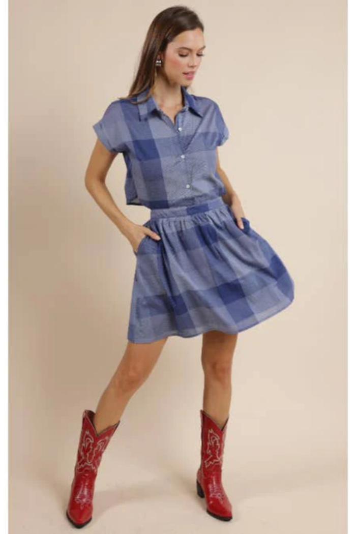 The Voyage Cotton Check Shirt Mini Dress brings together effortless style and everyday comfort. Crafted from breathable cotton with a breezy shirt-inspired silhouette, it features a button-down front, open back, and elasticized waist for a flattering fit. Side pockets add a touch of functionality, while the playful check pattern keeps it fresh and versatile—perfect for brunch, city strolls, or wherever the day takes you.