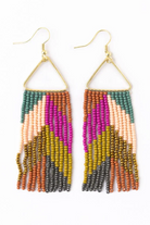 WHITNEY CHEVRON BEADED FRINGE EARRINGS MUTED RAINBOW