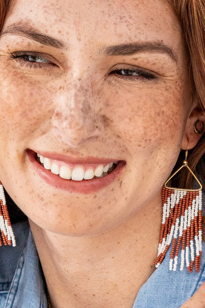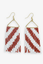 WHITNEY DIAGONAL STRIPE BEADED FRINGE EARRINGS RUST + WHITE