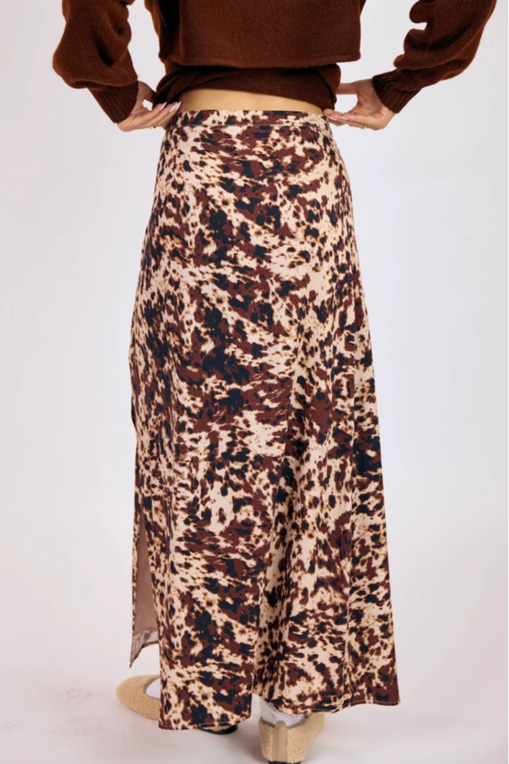 The Wild Mustang Maxi Skirt in Brown by Sage the Label brings a modern twist to Western-inspired style. Featuring a striking, abstract print in warm, earthy tones, this flowing skirt is crafted from soft, lightweight rayon with a smooth lining for effortless movement. Its natural bias-cut silhouette drapes beautifully, flattering every step with ease and grace. Perfectly paired with fitted knits or cropped sweaters, it strikes the ideal balance between bold, free-spirited energy and refined elegance.