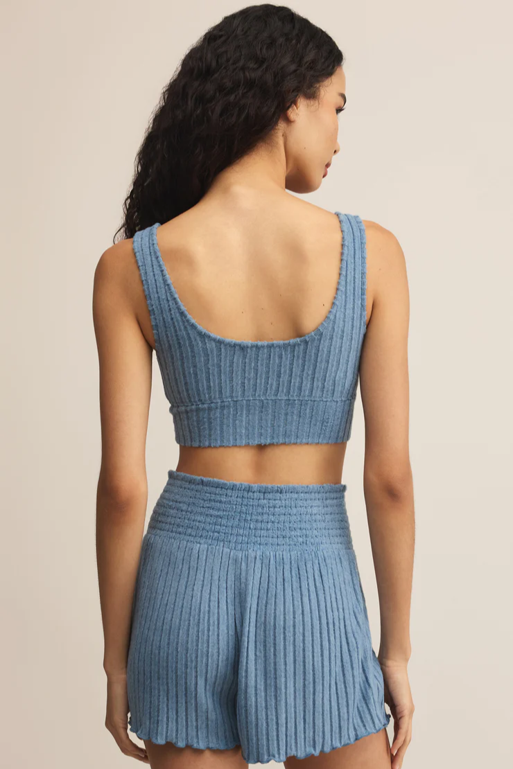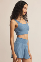 Zoe Rib Tank Bra in Oceanic Blue